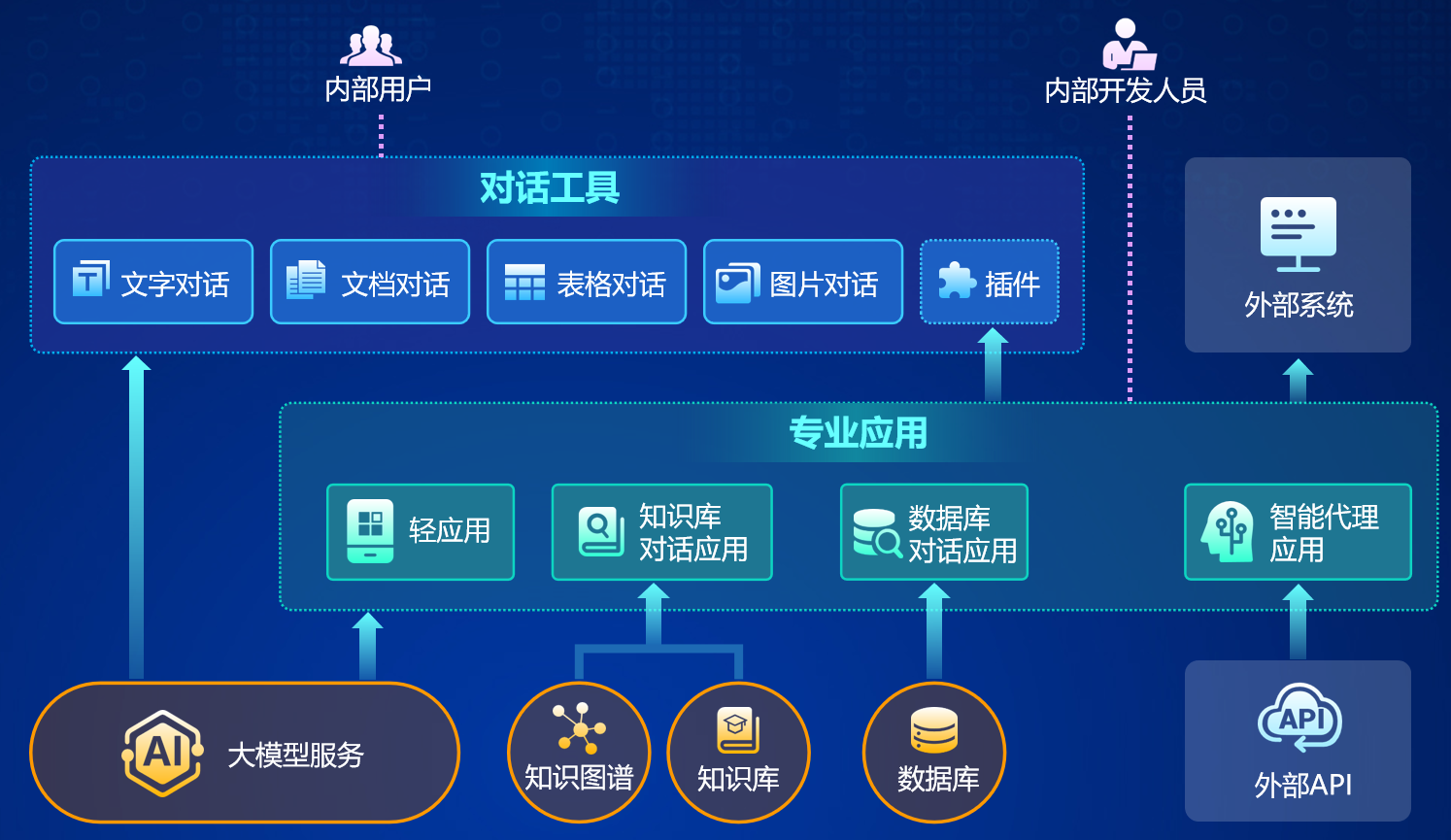 - 用户可以在外部系统中通过访问平台提供出来的API,调用平台的大模型能力。
