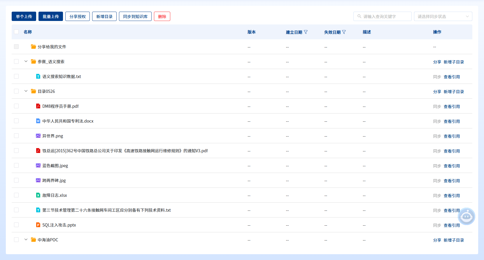 - 同步到知识库:将改动后的文档内容同步解析到相关的知识库中