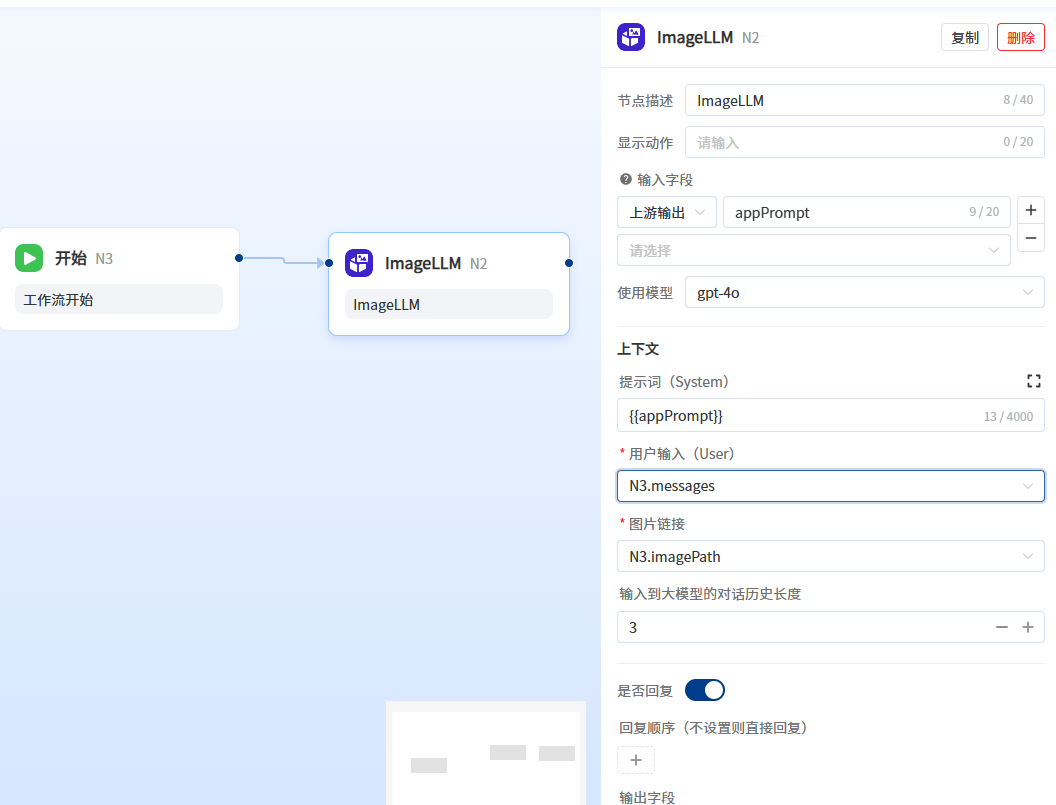 - 图片大模型组件,比LLM组件多支持了图片连接输入。可根据图片回答问题。